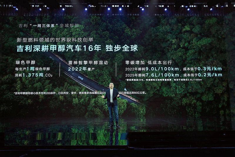值得一提的是,吉利在新型燃料领域深耕甲醇汽车16年,已经在甲醇能源领域独步全球,拥有核心技术专利200余件,在西安、晋中、贵阳等多地规模化运行2.7万辆,总运行里程达到80亿公里。2022年,吉利将推出“雷神智擎甲醇混动“车型,百公里醇耗在9L左右,醇耗降幅超40%,每公里的出行成本低于三毛钱。到2025年,百公里醇耗将降到7.6L,相当于百公里油耗3.5L,每公里的出行成本两毛钱,生命周期内零碳增加,更环保。