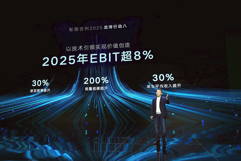 龙湾行动四:2025年度实现集团总销量365万辆,保持中国品牌市场占有率第一,赶超主流合资品牌。其中,极氪科技65万辆,吉利汽车集团300万辆。国内市场,吉利品牌130万辆;几何品牌30万辆;领克品牌60万辆;全新的科技换电出行品牌20万辆,集团整体海外销量60万辆。以极氪为引领,以雷神智擎混动技术为支撑,实现全面电气化,实现混动主流细分市场销量第一。到2025年,吉利汽车集团新能源销量将达到90万辆,占比30%。加上极氪品牌,吉利新能源的整体销量占比将超过40%。