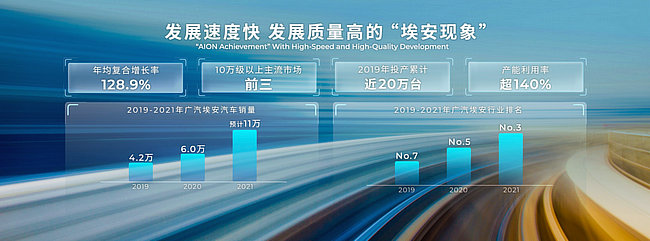 目前,广汽埃安智能生态工厂的产能10万辆/年,由于用户订单量激增,产能利用率已超140%。面对新能源汽车市场的快速发展,为满足用户对埃安产品的需求,2022年初广汽埃安将完成首个工厂20万产能扩建,同时第二个20万产能工厂也将在明年底建成投产,2023年将具备40万年产能,助力广汽埃安朝着“高端智能电动车品牌”的目标更迈进一步。