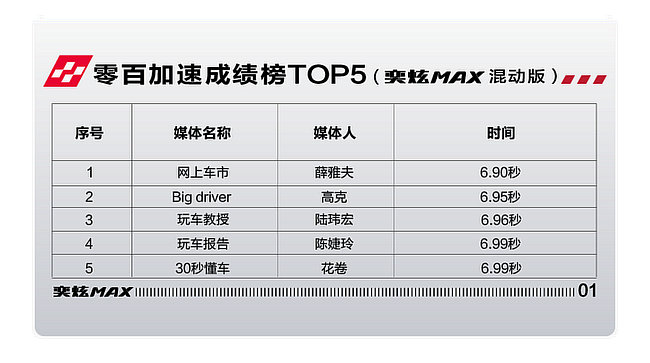(专业媒体人驾驶奕炫MAX混动版挑战零百加速top5成绩排行榜)