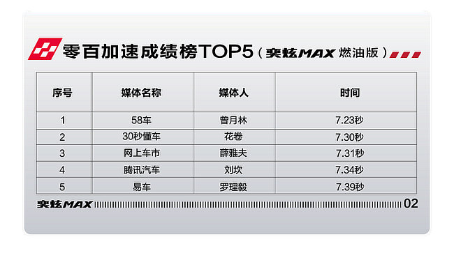 (专业媒体人驾驶奕炫MAX燃油版挑战零百加速top5成绩排行榜)