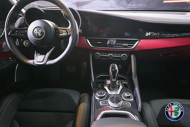 两款新车型在外观部分新增了大量碳纤维运动套件:碳纤维前格栅V型饰条、碳纤维外后视镜罩、碳纤维侧裙边(Giulia专属)、黑色VELOCE TI车身标牌等。同时深色双排气尾嘴更是增添了新车运动气息。碳纤维象征着轻量化与竞速,这些由设计师精心打造的运动套件,让新车的外观拥有更为明显的辨识度和美感,同时更能让用户从第一眼视觉观感,体验到来自于阿尔法·罗密欧的独特魅力。