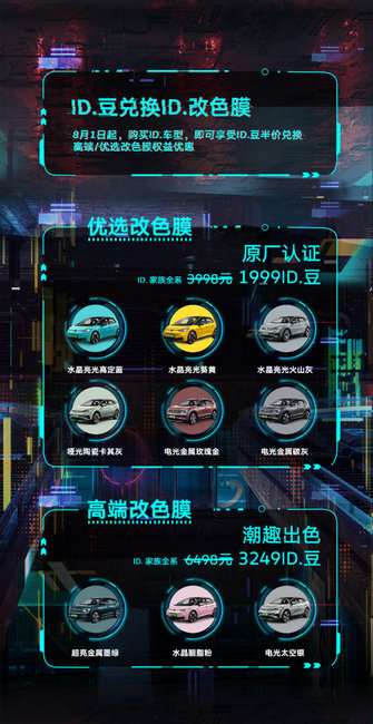 今年,ID.3跨界发起了ID.杯王者荣耀争霸赛,ID.纯电家族还邀请了喜剧CP“皓史成双”演绎ID.新生活。近期,ID.改装宇宙正在火热进行中,9款官方改色膜为ID.车主个性化换装。由ID.车主们共同谱写与演绎的ID.年度单曲即将在8月ID.追光音乐节上首发。首届与ID.车主一起共创的ID. DAY活动也将于年底举行,当前为活动准备的潮趣T恤、车主微电影等均由ID.车主参与设计共创,精彩可期。