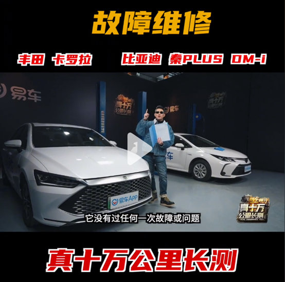 近期易车主办的一档“易车横评”栏目,对丰田卡罗拉双擎和比亚迪秦PLUS DM-i 进行了长达10万公里的耐久性测试,最后的结果是: