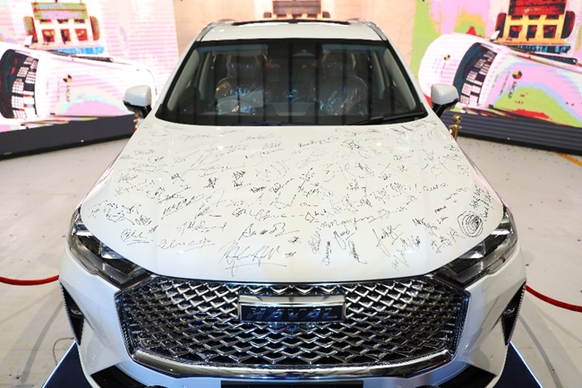 现场,长城汽车当地经销商及长城汽车人员参与了首台车下线仪式,首台当地组装的第三代哈弗H6正式揭幕亮相。第三代哈弗H6以时尚亮眼的外观造型、精致豪华的内饰、科技智能的核心配置燃爆全场。
