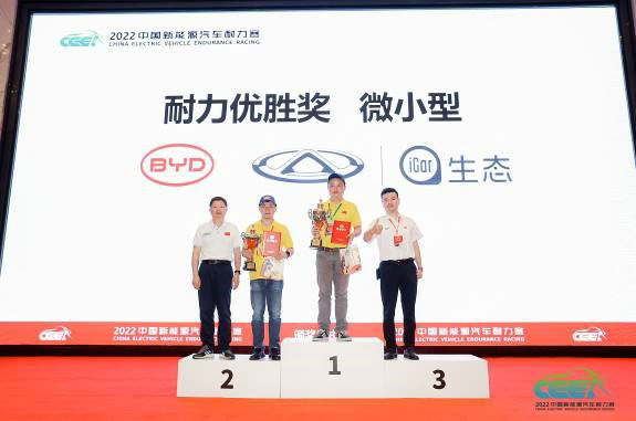 在赛事主办方设置的2022新能源汽车耐力赛微小型组中比亚迪海豚拔得头筹,荣获冠军称号,一并斩获2022新能源汽车耐力赛“十佳自主品牌奖”。