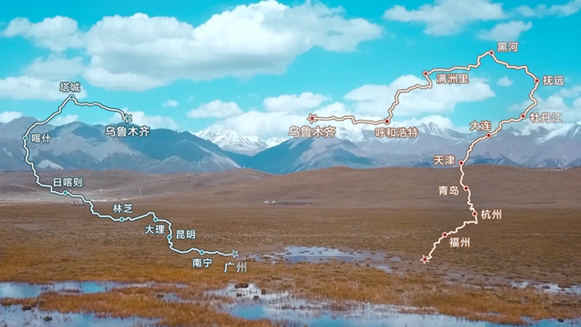 本次试驾将分成东西两线并行,从广州出发,东线经福州、青岛、大连、黑河、呼和浩特,西线经南宁、昆明、林芝、喀什、塔城,最终两线在乌鲁木齐汇合,完成绕国境线一周的试驾。