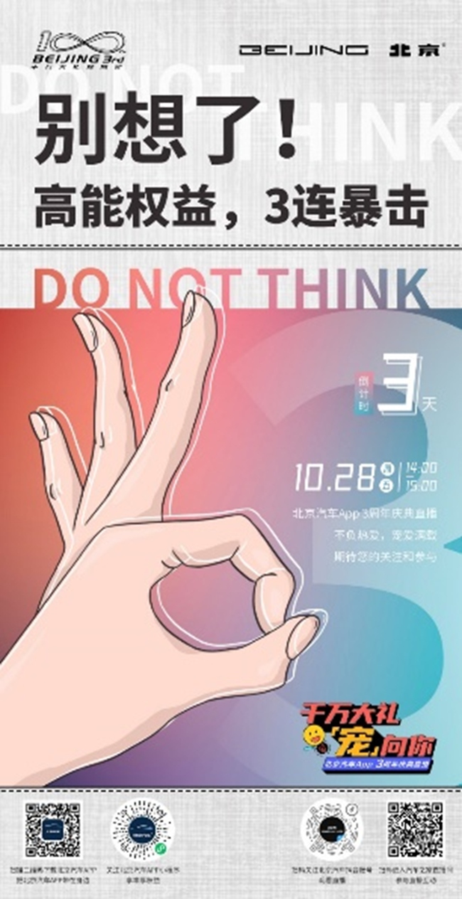 多多。怎么样,是不是超级期待?更多“京”彩,敬请关注10月28日14:00-15:00北京汽车官方账号——千万大礼“宠”向你,北京汽车App 3周年庆典直播,绝对不负热爱,不负期待,不会让您失望。错过第一波团购活动的朋友,10月28日App 3周年庆典当天,第二轮线上直播团购会也将再次开启,感兴趣的朋友可抖音搜索北京汽车官方旗舰店进行关注,更多“京”喜好礼,等你来拿。