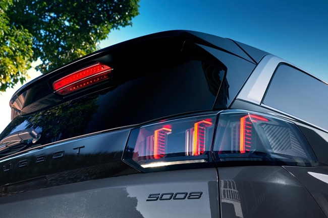 修长且灵动的腾跃式立体腰线,仿佛捕猎时蓄势待发的雄狮,呈现出雄浑壮阔之美。悬浮式黑钻车顶和19寸钻石切割双色轮辋,犹如流动的韵律,时刻闪耀驾驭的激情。跃动尾部设计中,全新PEUGEOT标识贯穿其中,搭配魅影黑品牌标识与车型标识,让狮爪式LED尾灯更具辨识度,背影亦撩人。