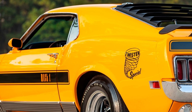 1970年,福特正式推出了面向堪萨斯及周边地区销售Mustang Twister限量版,该款车型基于赫赫有名的Mustang Mach 1打造,采用专属的橙色涂装与黑色拉花设计,并配以了独特的Twister旋风元素,因为这种性情猛烈且极具破坏力的风暴,正是堪萨斯大草原上最具代表性的气候现象。在1985年和2008年,福特分别推出过基于第三代和第五代Mustang GT打造的Twister特别版。带有旋风标识的限量车型也成为了很多人心中的经典,更在Mustang的传奇故事中留下了一笔浓厚的色彩,特别是限量96台的初代1970 Mustang Mach 1 Twister,现已成为众多经典车收藏家竞相追逐的对象,曾以超过20万美金的价格拍卖成交。