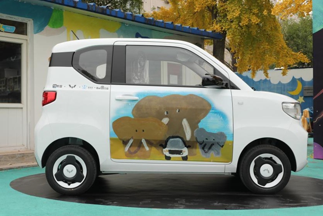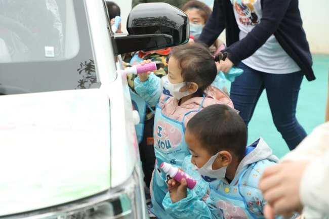 (孩子们正在涂鸦潮创宏光MINIEV)