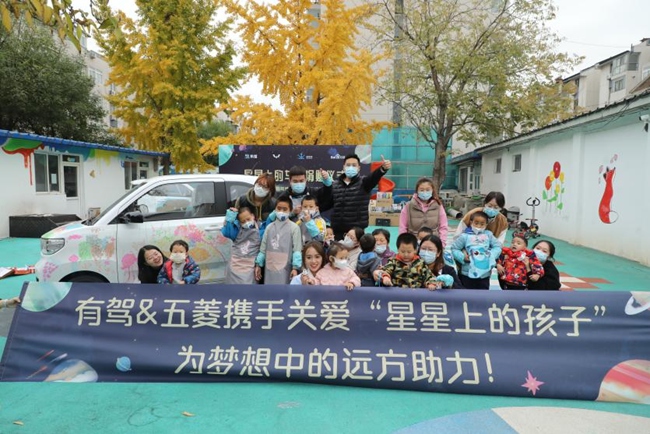 近日,为关爱和帮助孤独症儿童,五菱携手百度有驾主办了“星星上的车展”活动,双方还将一台五菱宏光MINIEV、五菱玩具积木及教育用品免费捐赠给孤独症儿童培训学校北京星星雨教育研究所的孤独症儿童,鼓励孩子们尽情表达自己对世界的认知与期许,去到梦想中的远方。