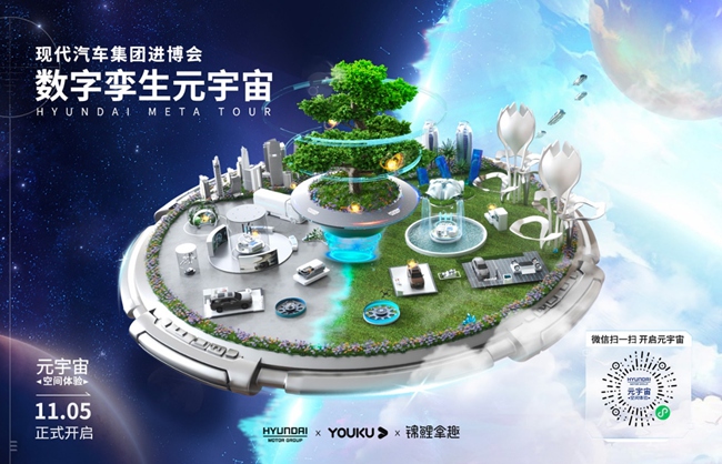 在此次进博会上,现代汽车集团联合中国阿里文娱旗下优酷、锦鲤拿趣共同开发上线了现代汽车集团元宇宙空间,运用领先的人工智能、虚拟现实等技术,将线下的展台“搬到”了元宇宙空间内,打造出沉浸式展台观览体验,观众可足不出户进入云展台,打卡进博会现代汽车集团展区,还能通过寻找能量球的方式,解锁神秘的“数字孪生空间”。