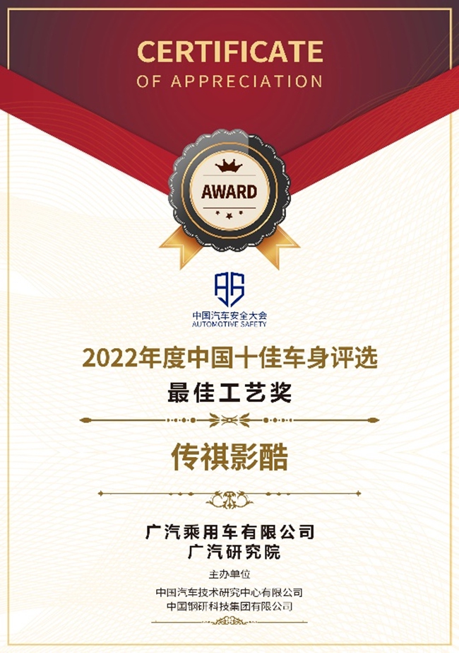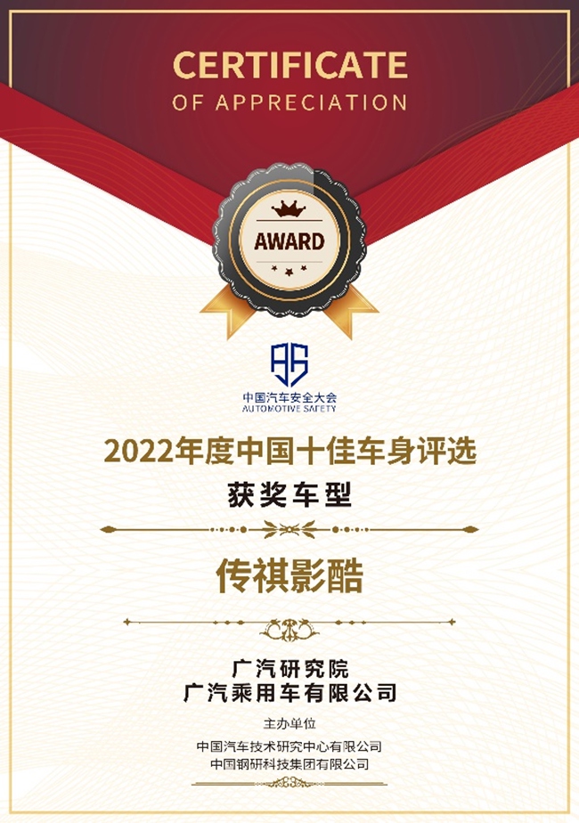 如今,大家对于汽车安全的重视程度也日益增加,汽车安全也成为车企竞争力的重要一环。传祺影酷在车身安全上也下了不少文章,整车以中保研C-IASI全优秀和中汽研C-NCAP五星标准为目标进行开发,打造装甲级的车身保护,这也是影酷能成功在众多车型中脱颖而出,荣获“2022中国十佳车身”的重要支撑。