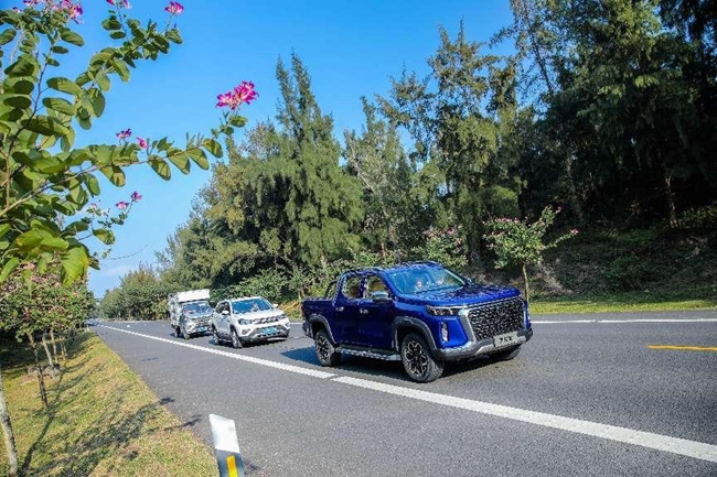 最令人惊艳的是,长安览拓者上演了“最拽皮卡”的非凡实力。行至万宁路段,长安览拓者一口气挑战同时拖拽两台车:一台SUV 一台卡车,实际拖拽吨数达到3.5吨以上,超高负荷下长安览拓者行驶稳稳如常。这一数据,已远远打破了长安览拓者公告的2.5吨拖拽质量,更超越了其参与制订的皮卡拖拽标准。