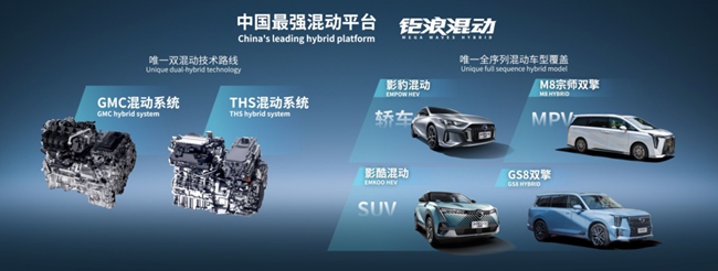 混动技术层面,依托十余年技术积淀,广汽传祺钜浪混动通过开放合作的THS系统与自研的GMC混动系统,成为唯一拥有双技术路线的品牌,并赋能于产品,推出钜浪混动四大王牌车型矩阵,包括全新第二代GS8双擎版、影豹混动版、影酷混动版及M8宗师系列混动版,实现唯一全序列混动车型覆盖。