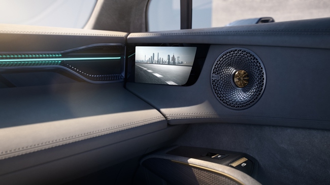 路特斯流媒体外后视镜,所采集的视野信息及智能主动安全系统的安全提示,均将呈现于前排两侧车门板上的两块6英寸的高分辨率LCD显示屏中。两块屏幕的分辨率为1280*720,刷新率达60赫兹,同时带有15档亮度调节功能,能满足不同环境光下对于屏幕的亮度需求,加持以先进图像算法,无论白天黑夜均能显示清晰,极佳视野表现远超传统外后视镜。