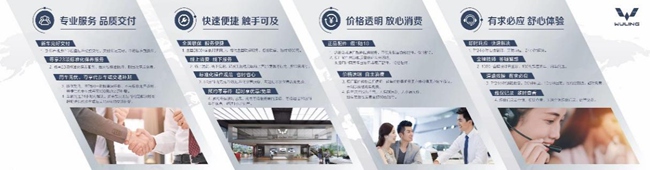 购车、用车全流程承诺4大服务:联动全网对外发布“4大服务承诺”,新车时承诺用户专业服务,品质交付;用户进店时承诺价格透明,放心消费;在用户需要解决问题时承诺有求必应,体验舒心;用户需要服务时做到快速便捷,触手可及。