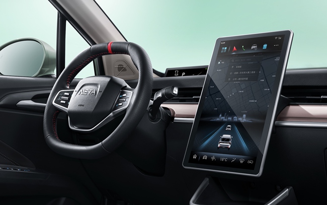 对于年轻人来说,精致简约才是更为高级的审美。进入到哪吒V车内,就可以感受到整体设计非常简洁,中控台附近没有物理按键,大多数功能都集中在14.6英寸的中控大屏上并通过高性能8核处理器实现快速响应。全系配备12英寸的全液晶仪表盘位于前挡风玻璃下方,保证了中控台造型的整体性,符合人体工学设计,仪表中集成了重要的行车信息,比如档位、车速、电量等,方便驾驶员随时了解车辆情况。