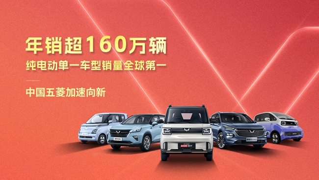 2022年,中国五菱向新而行,总销量达1,600,007辆,其中新能源汽车销量超过60万辆,同比增长33%。五菱宏光MINIEV家族全年领跑纯电汽车赛道,累销超55万辆,蝉联28个月中国品牌纯电汽车销量第一;“人民的混动”五菱星辰HEV自上市以来持续保持自主HEV市场销量第一;商用车领域,五菱微货、宏光系列以绝对优势维持市场高份额。2022年,五菱以全球精益品质,造人民好开、好停、好省的好车,深受人民青睐。中国五菱凝聚向心力,加速新发展!