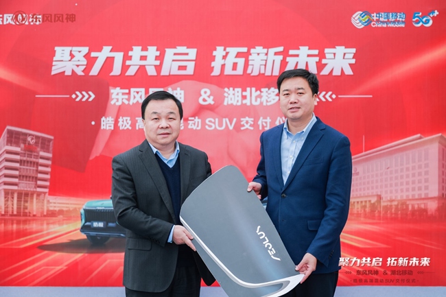 2月14日下午在东风乘用车公司营销大楼前,144台东风风神皓极被正式交付给中国移动湖北公司,将作为湖北移动工作用车,两家大型国有企业在战略层面的合作迈开坚实的第一步。湖北移动总经理魏春辉、副总经理陶华、东风乘用车公司党委书记段仁民、副总经理师建兴等出席交付仪式,并签署战略合作协议。湖北移动公司一行领导在参观完东风风神生产车间,体验完现代化生产设备和制造工艺的先进与智能化后,由衷赞叹“东风风神不愧是造车国家队,央企品牌硬核品质值得信赖!”