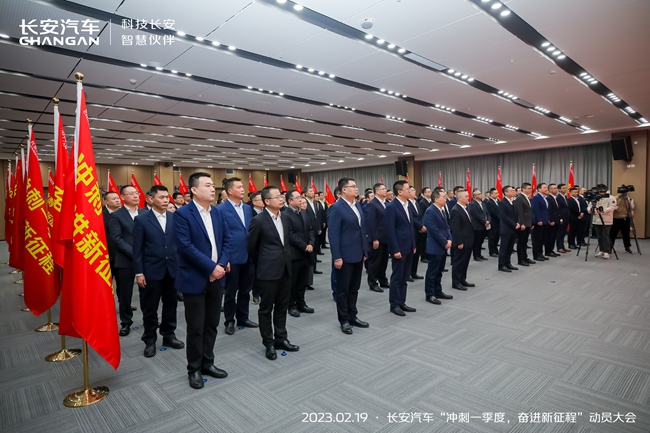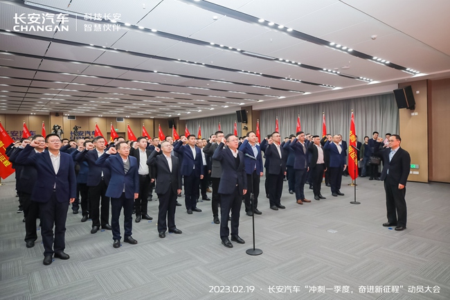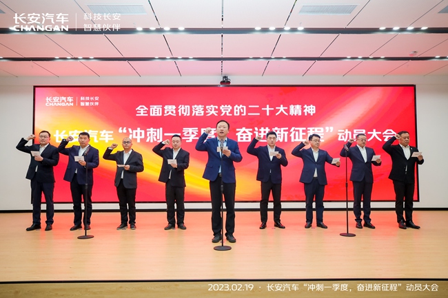 开局关乎全局,起步决定后程。2023年是全面贯彻落实党的二十大精神的开局之年,是实施“十四五”规划承上启下的关键一年,为深入学习贯彻中央经济工作会议精神,作为中国汽车工业的代表品牌,长安汽车坚持创新驱动发展,加速向智能低碳出行科技公司转型,以满电出发的姿态向世界级品牌发起冲锋。2023年2月19日长安汽车召开以“冲刺一季度,奋进新征程”为主题的动员大会,动员全体干部职工、广大合作伙伴,全力抢市场、促交付、提销量,冲刺一季度,为完成全年生产经营目标筑牢坚实基础。