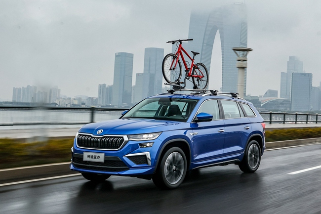 车顶行李架安上自行车的全新柯迪亚克,配合海外RS运动版车型造型风格,更显活力动感。全新柯迪亚克与自行车构建的“4 2”出行方式,自成一道靓丽的风景线,强势吸睛。