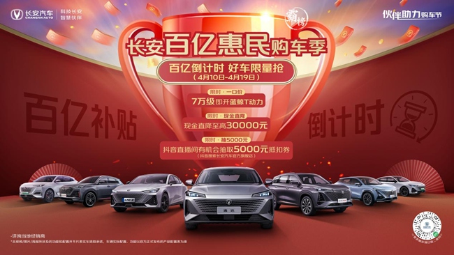 福利再加码,好车赶快抢。此次“长安百亿惠民购车季”是长安汽车积极响应国家促消费号召,落实惠民利民措施,履行作为国企的责任和担当。对消费者来说,则是绝佳的购车机会,错过这次不知要等到何时,所以有购车打算的朋友们,赶紧联系各地4S店,即日起至2023年4月19日,限量优惠,抓紧时间,速速购车。