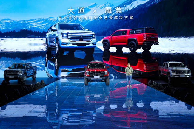 发布会上首发亮相的大道乘用版、大道商乘版和大道越野版三款车型,分别满足不同类别消费者的差异化用车需求,大道魔盒更是打开了皮卡车型的百变基因,让一车多用成为可能。