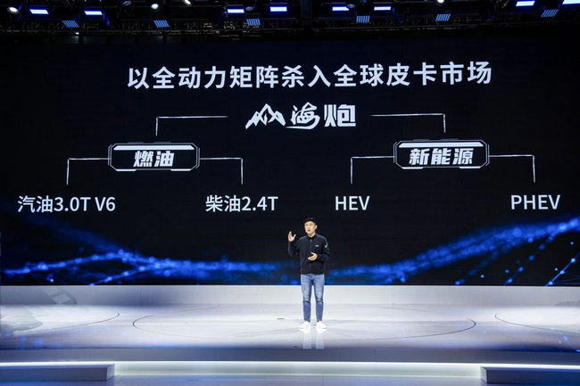 长城炮采用以电赋能燃油策略,基于Hi4-T越野超级混动架构,打造中国首款大型高性能混动皮卡——山海炮PHEV、山海炮HEV车型,引领中国皮卡4.0全场景智能新能源时代。