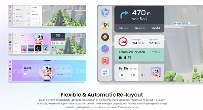 车载系统实时根据用户的操作来调整APP占用界面和系统空间大小,用户可实现多个app同时保留。