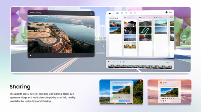 车载摄像头在行程中会记录下沿途风景,自动剪辑成短片,用户在旅行之后都可收获一段“菁华”记忆并支持上传分享。