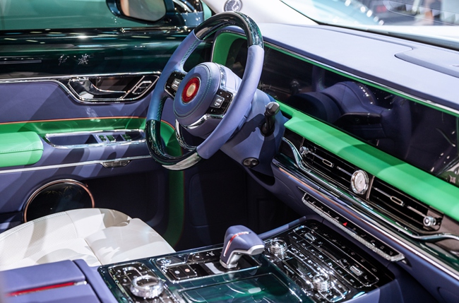 全新红旗L5的车内装饰沿袭外观风格,在中式建筑重檐翘角的横向轮廓上汲取灵感,采用横向贯穿式中控台设计,加入由全液晶仪表盘 多媒体显示屏组成的一体式双联屏,与右侧“山水画”融为一体凸显东方古典;复古的双幅式多功能方向盘+“红旗金葵花”标识,再配合中央石英表,直接将尊贵感拉满,顶级豪华车的气场完全被释放。