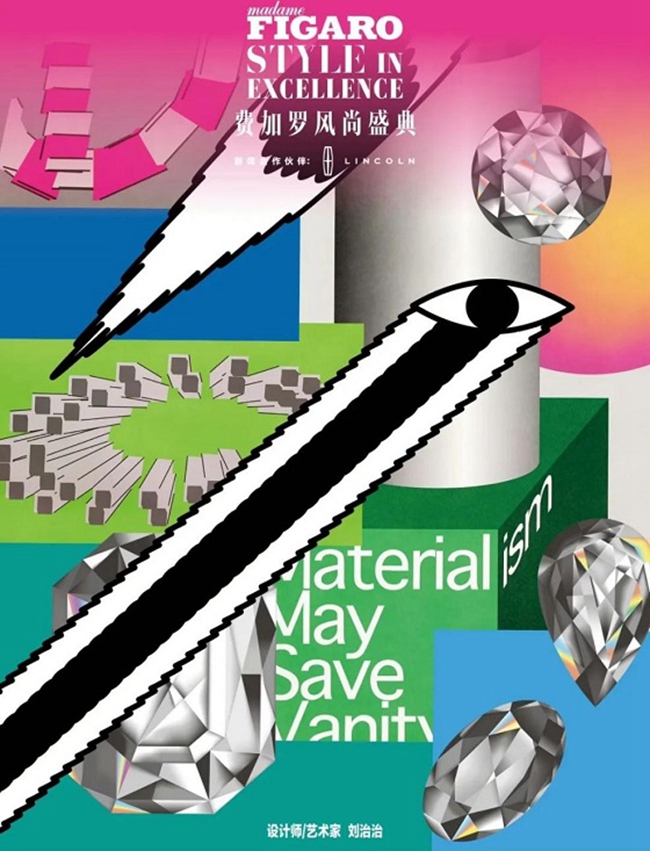 平面设计大师刘治治为费加罗风尚盛典独家设计了视觉海报。艺术家刘治治拥有多重身份:立入禁止STUDIO NA.EO 联合创始人、中央美术学院设计学院教师、国际平面设计师联盟AGI会员。他将看似宏大高远的话题通过设计语言变得通俗易懂、无限地贴近生活,与当潮理念不谋而合。